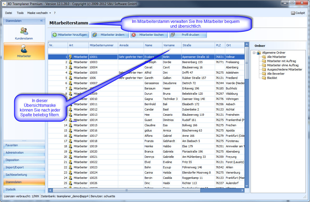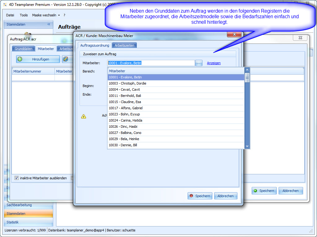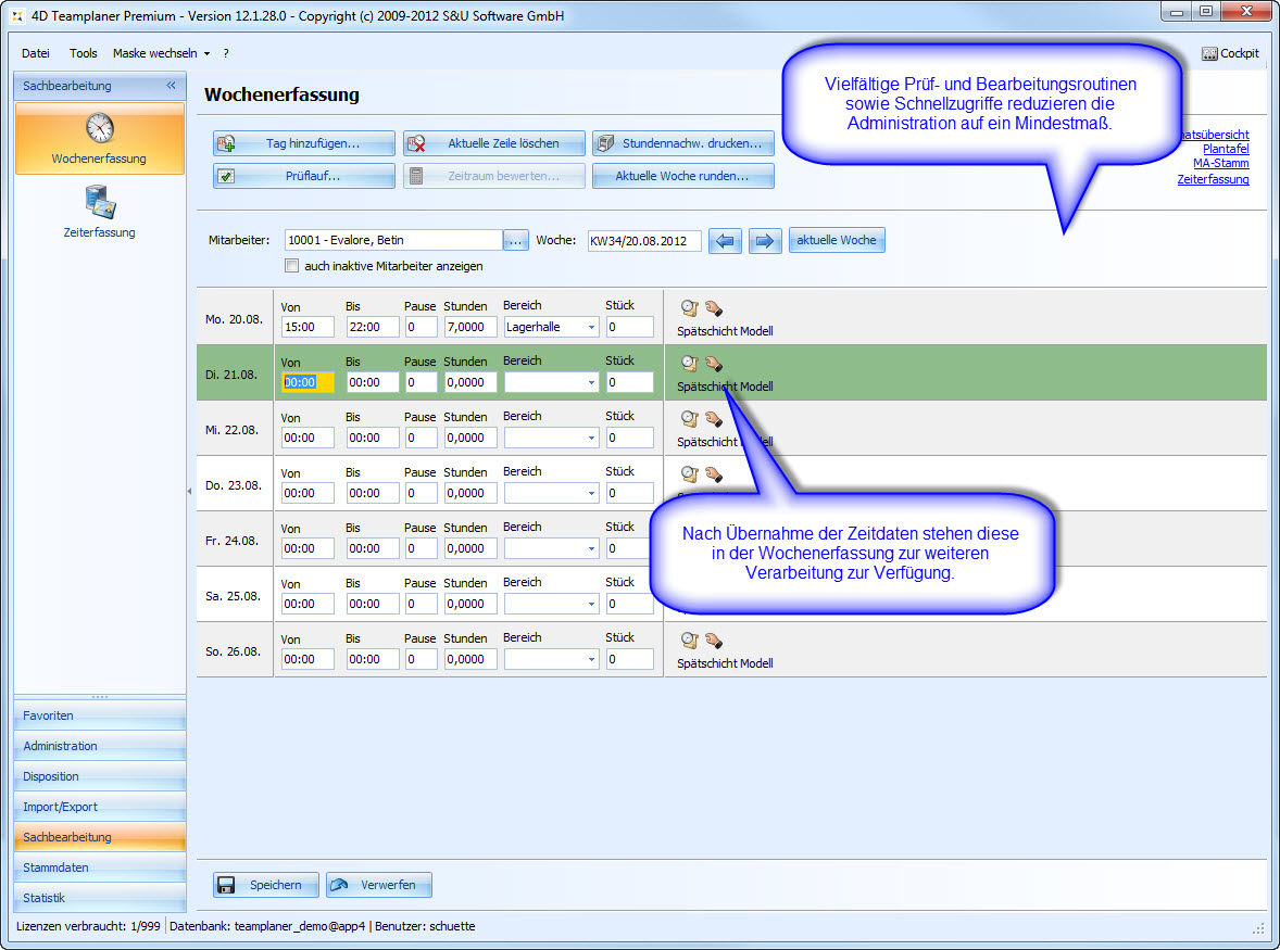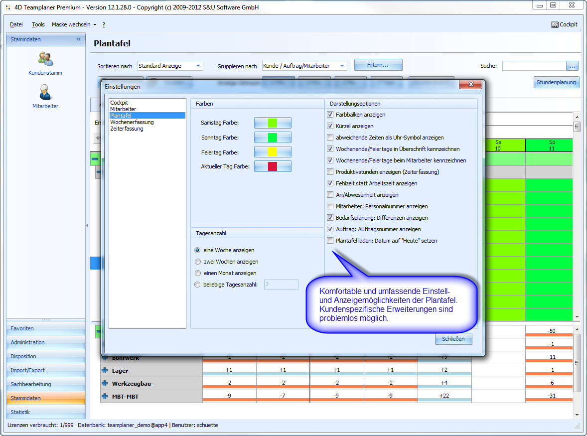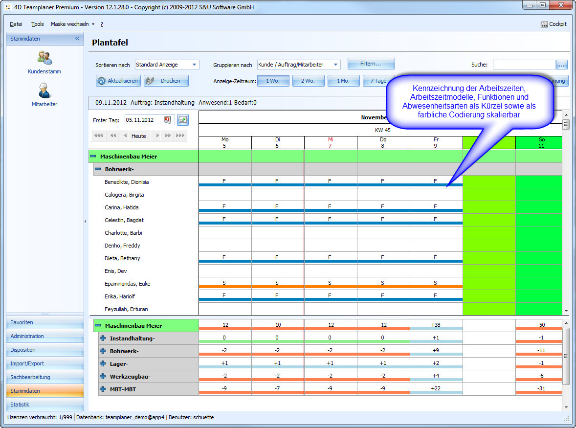 Die Plantafel ist unser zentrales Planungs- und Management-Werkzeug für die Urlaubsplanung, Schichtplanung, Einsatzplanung und Personalplanung. Egal ob Industrie-Betrieb, Handwerk, Feuerwehr, Pflegedienst oder Catering-Service: Wenn Sie Personal zu planen haben, Urlaub verwalten wollen oder Schichten disponieren, ist der 4D Teamplaner das ideale Werkzeug für Sie.
