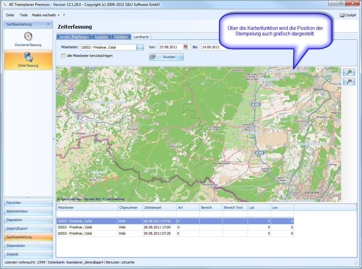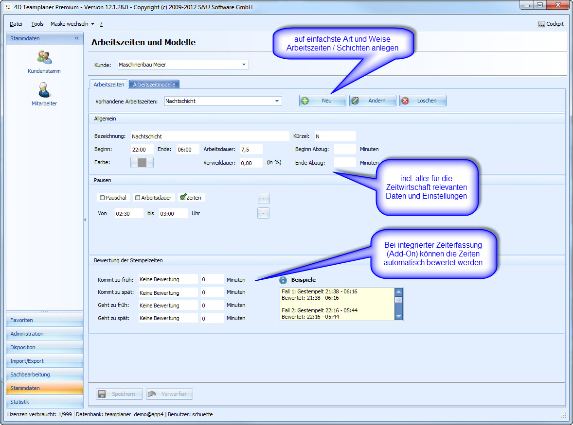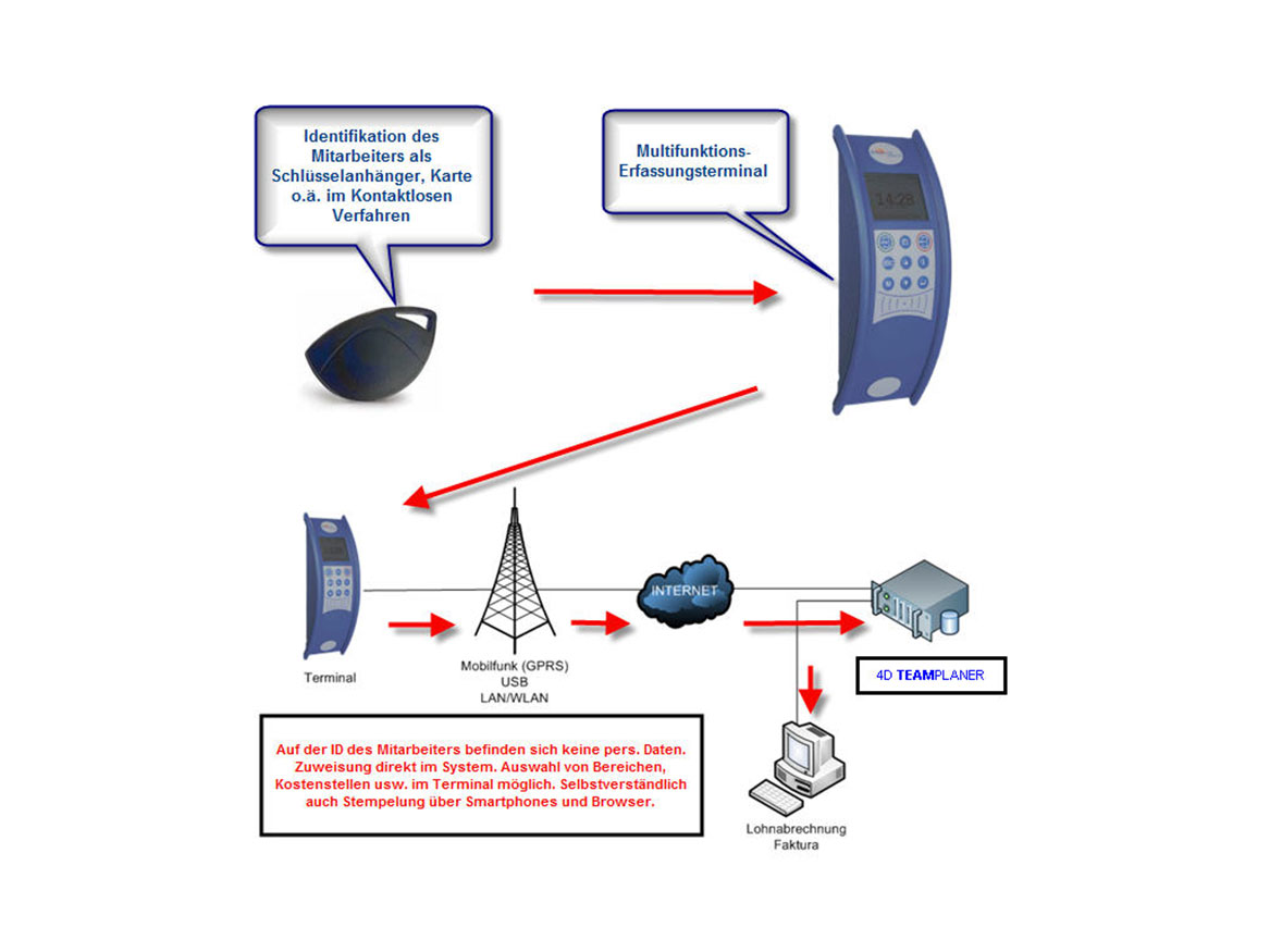 Mitarbeiter zu disponieren und Aufträge zu verwalten ist aber nur der Anfang: Der 4D Teamplaner bietet daneben eine umfangreiche Unterstützung für Arbeitszeit-Modelle, Bedarfsplanung, eine komplette Zeiterfassung mit Unterstützung für Hardware-Terminals, iPhone und Android, sowie eine Routen- und Tourenplanung.